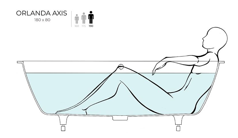 ORLANDA AXIS KIT 180 – универсальная ванна Salini из литого камня.Она предназначена как для полного или частичного встраивания, так и для любой установки — пристенной, угловой или отдельно стоящей. Ванна характеризуется одинаковым уклоном бортов и расположенными посередине сливом-переливом и донным клапаном. Название модели Axis («Ось») отражает характерную симметрию ванны во фронтальной проекции. Преимущества