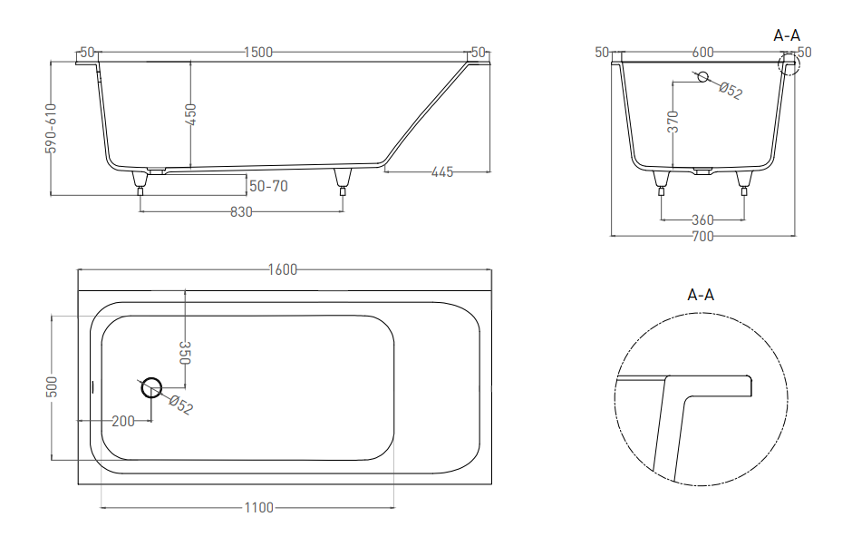 Ванна из искусственного камня Salini Orlanda S-Stone 102025MRF 160x70см RAL полностью