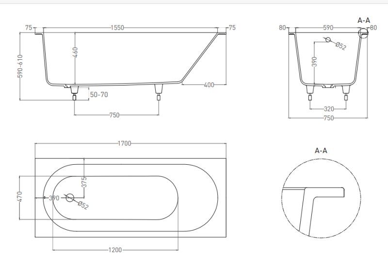 Стандартные размеры, см:170x75
