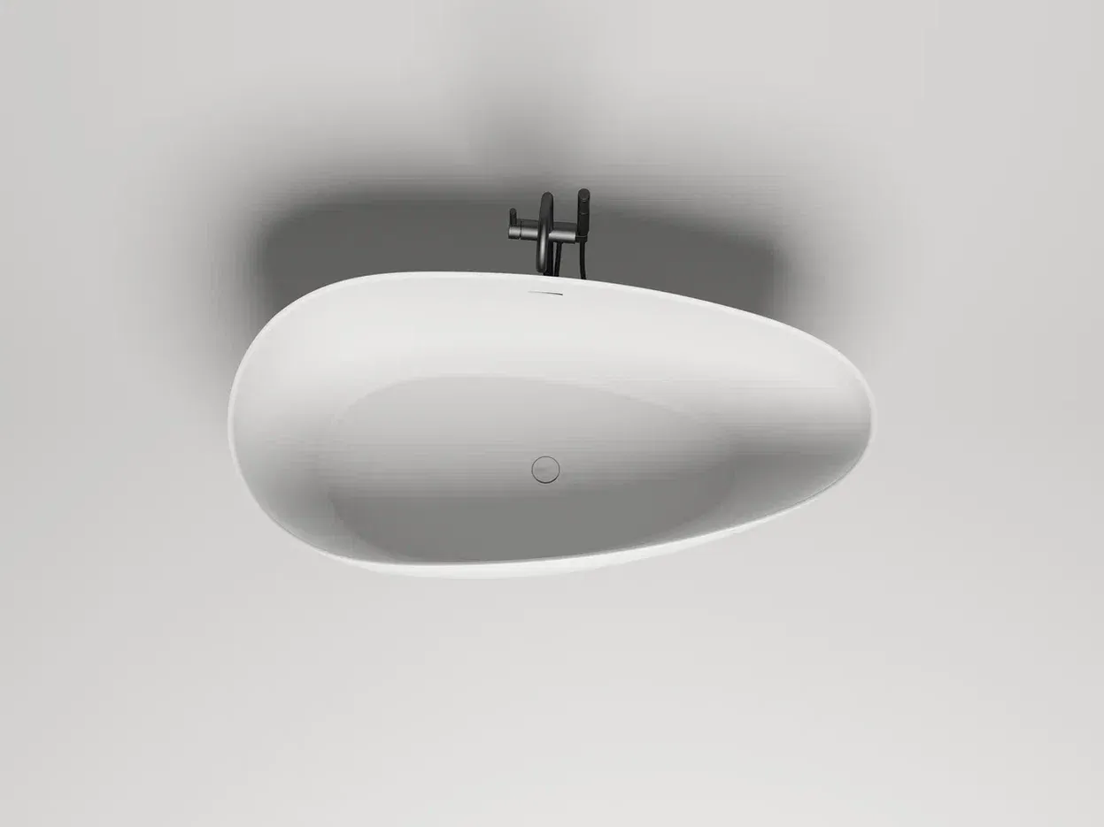 Необычный дизайн благоволит к смелым интерьерным решениям, особенно в сочетании с одноимённной раковиной-компаньоном, не только эффектной, но и практичной благодаря увеличенной глубине. Достаточно компактный размер ванны располагает просторным внутренним объёмом.