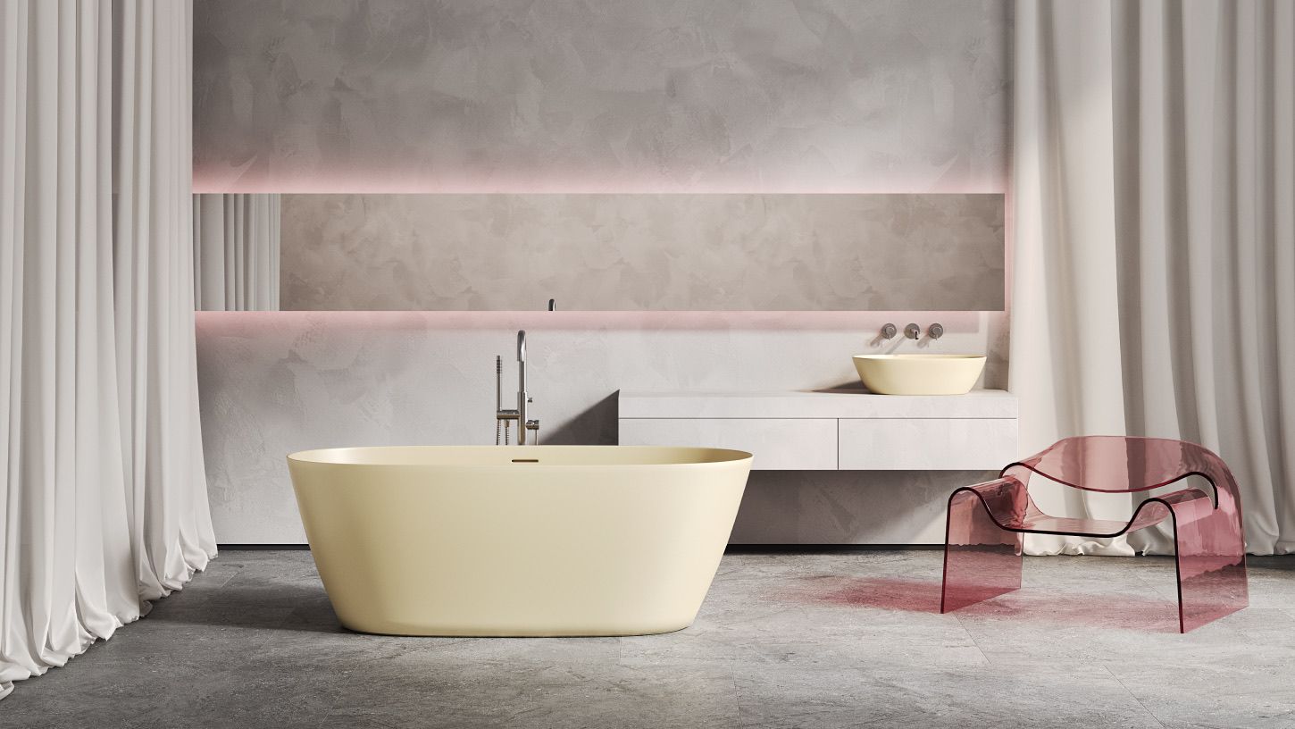 Ванна SOFIA хорошо смотрится как у стены, так и в центре комнаты — особенно в сочетании с удобной раковиной современного силуэта из этой же серии. Преимущества