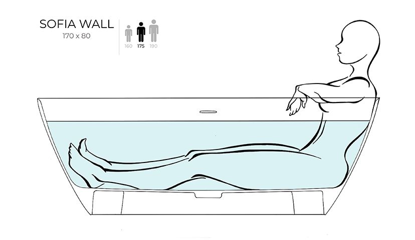 Пристенная ванна SOFIA WALL — практичное решение, когда не хочется терять ни сантиметра ценной площади ванной комнаты. Широкий бортик позволит расположить на нём необходимые туалетные принадлежности, а его ровное примыкание к стене упростит принятие душа.