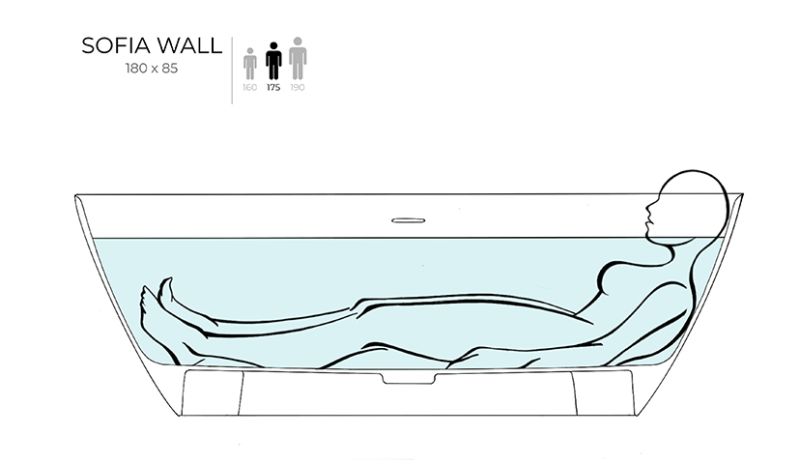 Пристенная ванна SOFIA WALL — практичное решение, когда не хочется терять ни сантиметра ценной площади ванной комнаты. Широкий бортик позволит расположить на нём необходимые туалетные принадлежности, а его ровное примыкание к стене упростит принятие душа.