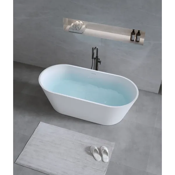 Поверхность ванны приятная на ощупь и не холодная благодаря низкому уровню теплопроводности, что делает процесс эксплуатации очень приятным.
