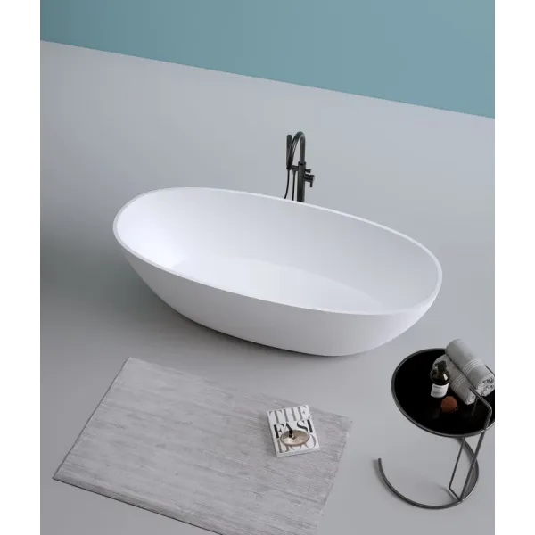 Поверхность ванны приятная на ощупь и не холодная благодаря низкому уровню теплопроводности, что делает процесс эксплуатации очень приятным.