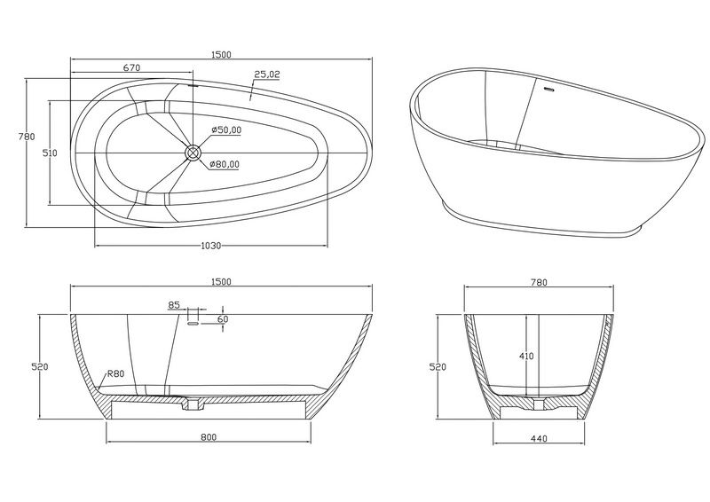 Поверхность ванны приятная на ощупь и не холодная благодаря низкому уровню теплопроводности, что делает процесс эксплуатации очень приятным.