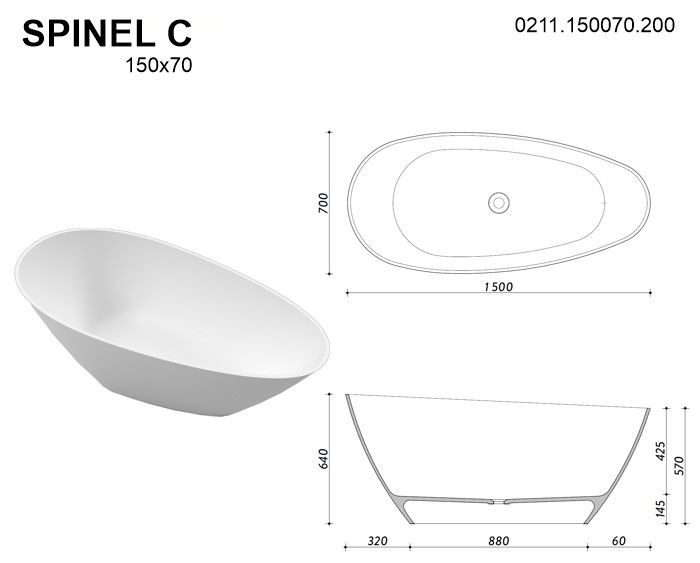 Ванна из искусственного камня Whitecross Spinel C 0211.150070.200 150x70см белый матовый