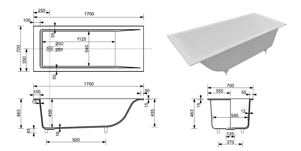 Размер 170x70 см