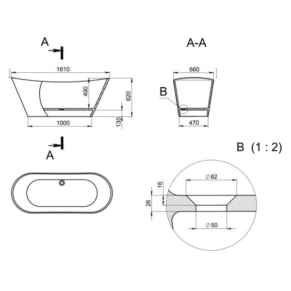 Ванна отдельностоящая Holbi Afina 161x66см белый матовый 1.01.004.11.1 купить