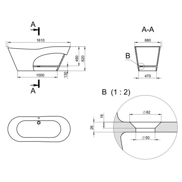 Ванна отдельностоящая Holbi Afrodita 161x68см белый/цветной матовый 1.01.005.11.2