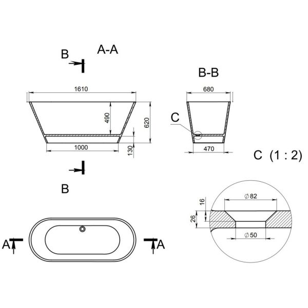 Ванна отдельностоящая Holbi Selena 161x68см белый/цветной матовый 1.01.006.11.2