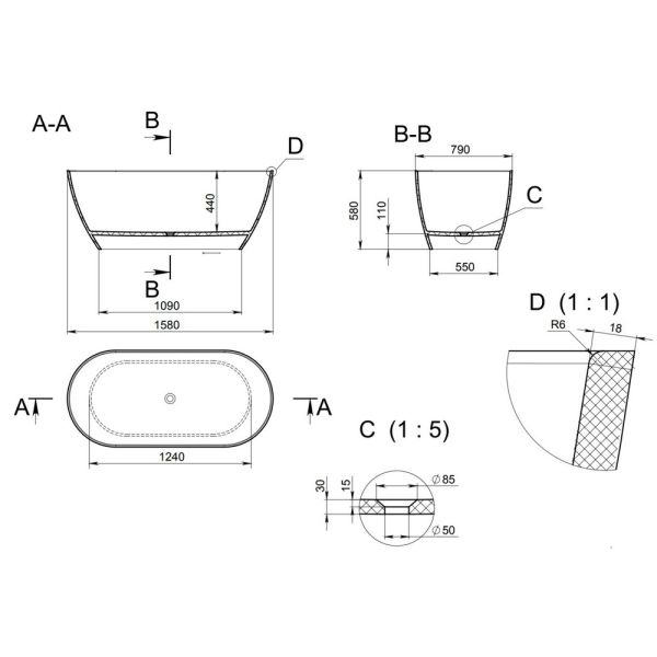 Ванна отдельностоящая Holbi Venus NEW 158x79см цветной матовый1.01.002.11.3