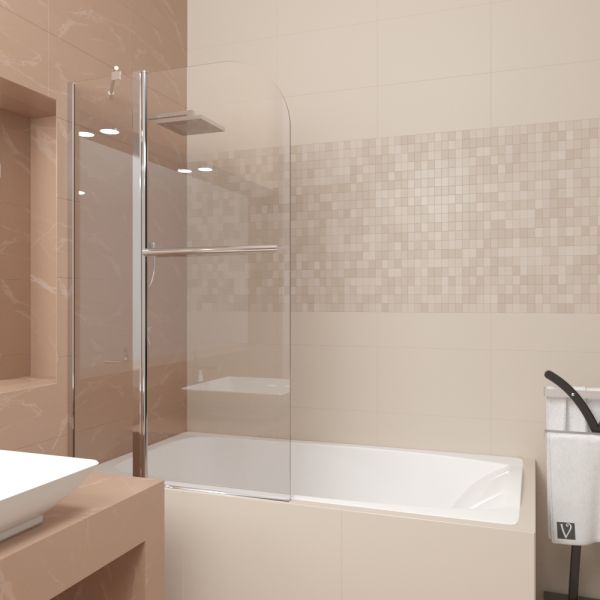 Неподвижная панель крепится пристенной штангой из нержавеющей сталиv