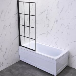 Шторка на ванну Veconi PL77L 80 x 150 см распашная, стекло прозрачное, черный матовый, левая, PL77L-80-01-C6Душевая шторка на ванну