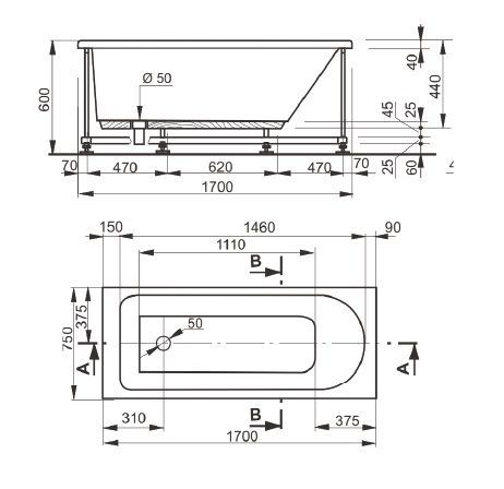 Ванна акриловая Mira 170x75 – комфорт и долговечность Высокое качество и надежность Ванна MIRA 170x75 изготовлена из европейского акрилового листа толщиной 5 мм, который отлично сохраняет тепло и обладает гигиеничными свойствами. В зонах повышенной нагрузки установлены специальные закладные элементы, а снаружи корпус усилен армирующим слоем для дополнительной прочности. Преимущества:? Устойчивость к повреждениям – акрил не трескается и не тускнеет со временем.? Гладкая бесшовная поверхность – не впитывает загрязнения, легко чистится.? Комфортная глубина – удобный размер 150x70 см подойдет для комфортного купания.? Долговечность – прочная конструкция с усиленным корпусом. Комплектация и монтажВанна монтируется на металлический каркас (покрыт антикоррозийной порошковой краской, приобретается отдельно). Для полной комплектации потребуются: - Слив-перелив - Боковая и фронтальная панели - Каркас Идеальный выбор для тех, кто ценит качество, удобство и простой уход!
