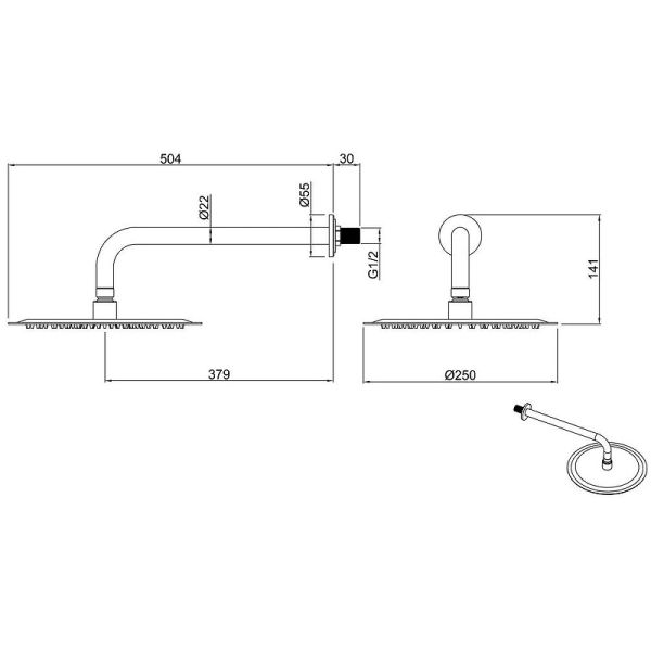 Диаметр верхнего душа: 25 см.