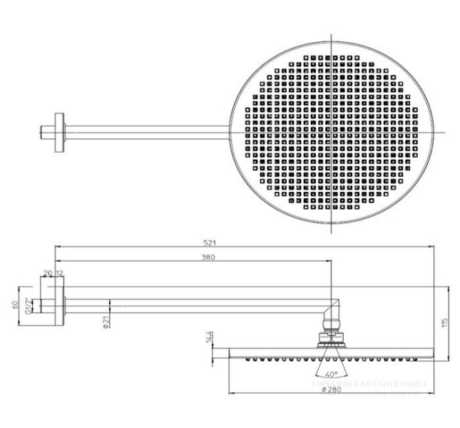 Размер верхнего душа, см:28