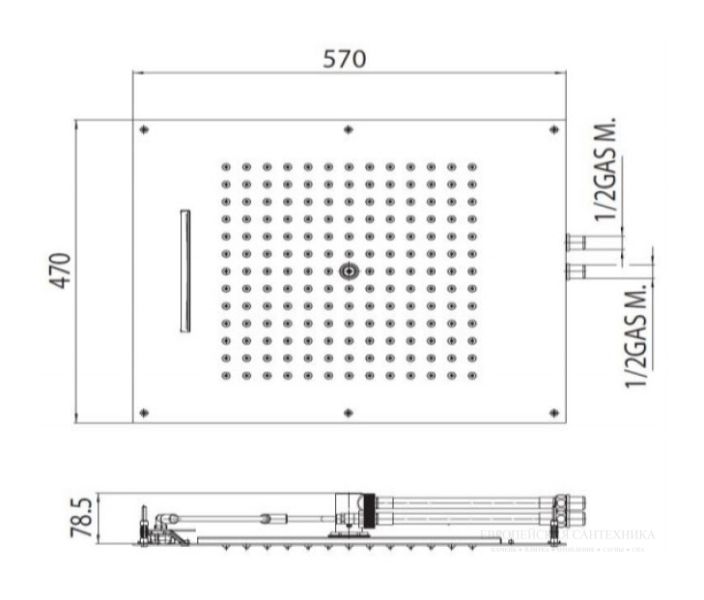 Верхний душ Bossini Dream/2 размером 570х470 мм — это отличный выбор для тех, кто хочет сделать свое душевое пространство более стильным и функциональным. Уникальная функция дождя создает ощущение свежести и комфорта, в то время как режим каскада позволяет насладиться эффектом водопада. Чёрный матовый цвет придает душу современный и элегантный вид, идеально вписывающийся в любой интерьер ванной комнаты. Встроенная RGB LED подсветка создает атмосферу расслабления и уюта, позволяя выбирать разные цветовые режимы в зависимости от настроения.
