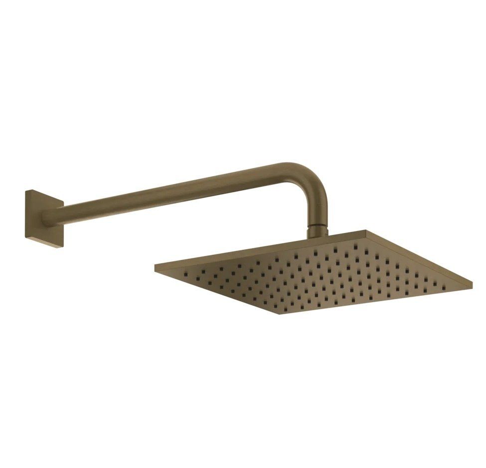 Верхний душ Gessi Rilievo в отделке Antique Brass выполнен в лаконичном квадратном формате 250×250 мм и оснащён шарнирным соединением, позволяющим точно настраивать угол наклона струи для комфортного душа.