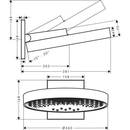 Размер верхнего душа, см:36