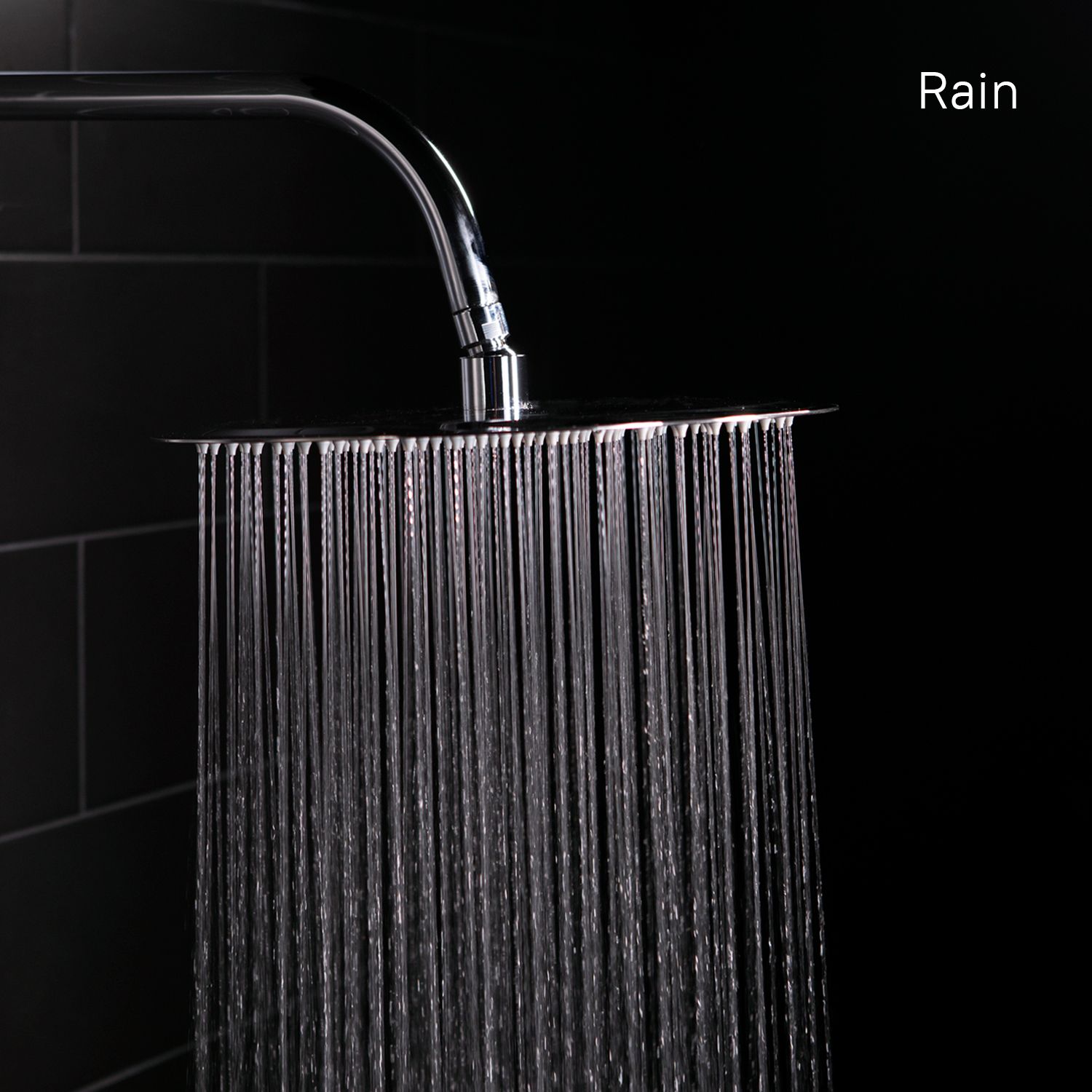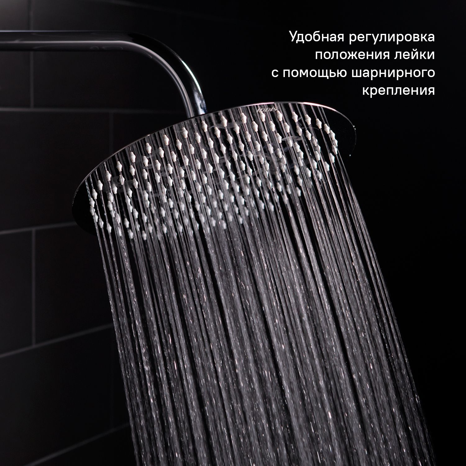 Душевая насадка верхняя, круглая, материал нержавеющая сталь (тонкая), диаметр 300 мм, темно-серые форсунки.