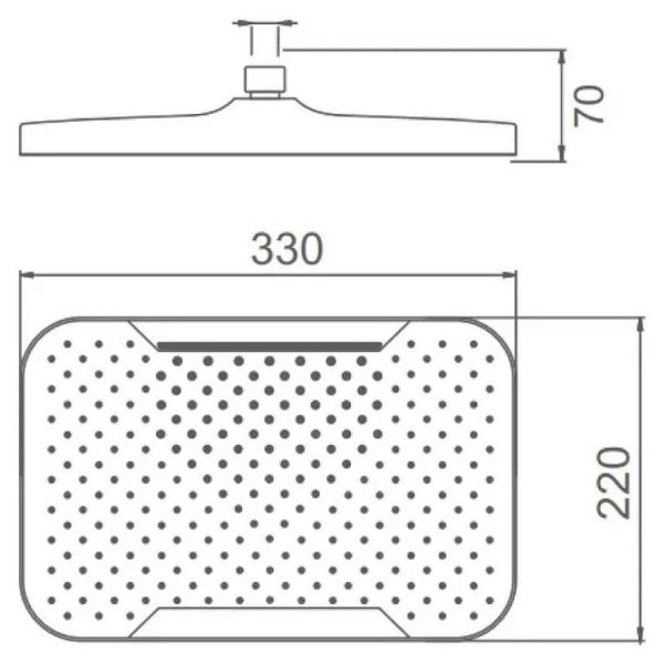 Тропический (верхний) душ Splenka S451.54. Цвет хром. Материал пластик. Форма прямоугольная. Размер душа 330*220*70 мм. Стандарт подводки 1/2".
