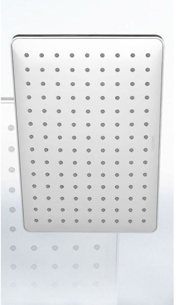 Верхняя душевая насадка Хромированная лицевая поверхность.Система Air-In. Латунный шарнирный крепежРазмер - 300х190 мм.