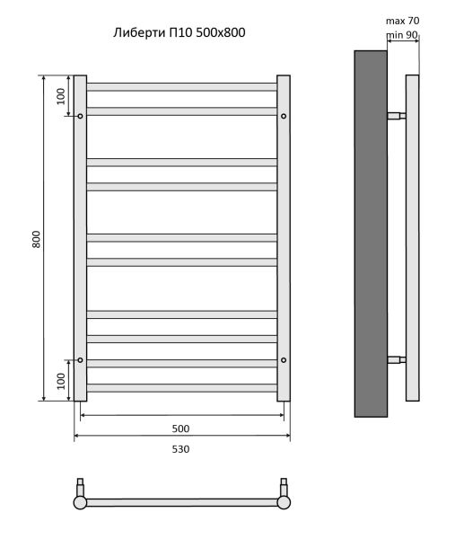 Полотенцесушитель водяной Aquatek (Акватек) Либерти П10 500х800 мм, черный муар, подключение нижнее/диагональное, сверхпрочная пищевая нержавеющая сталь AISI 304L, гарантия 10 летХарактеристики:32х18,без фитинговКомплектация:полотенцесушитель;