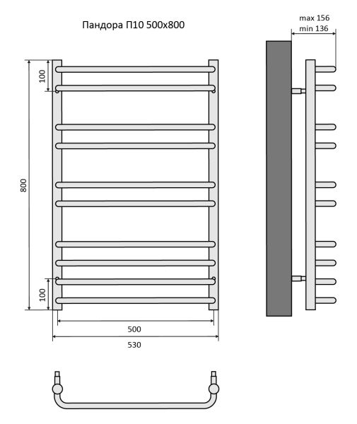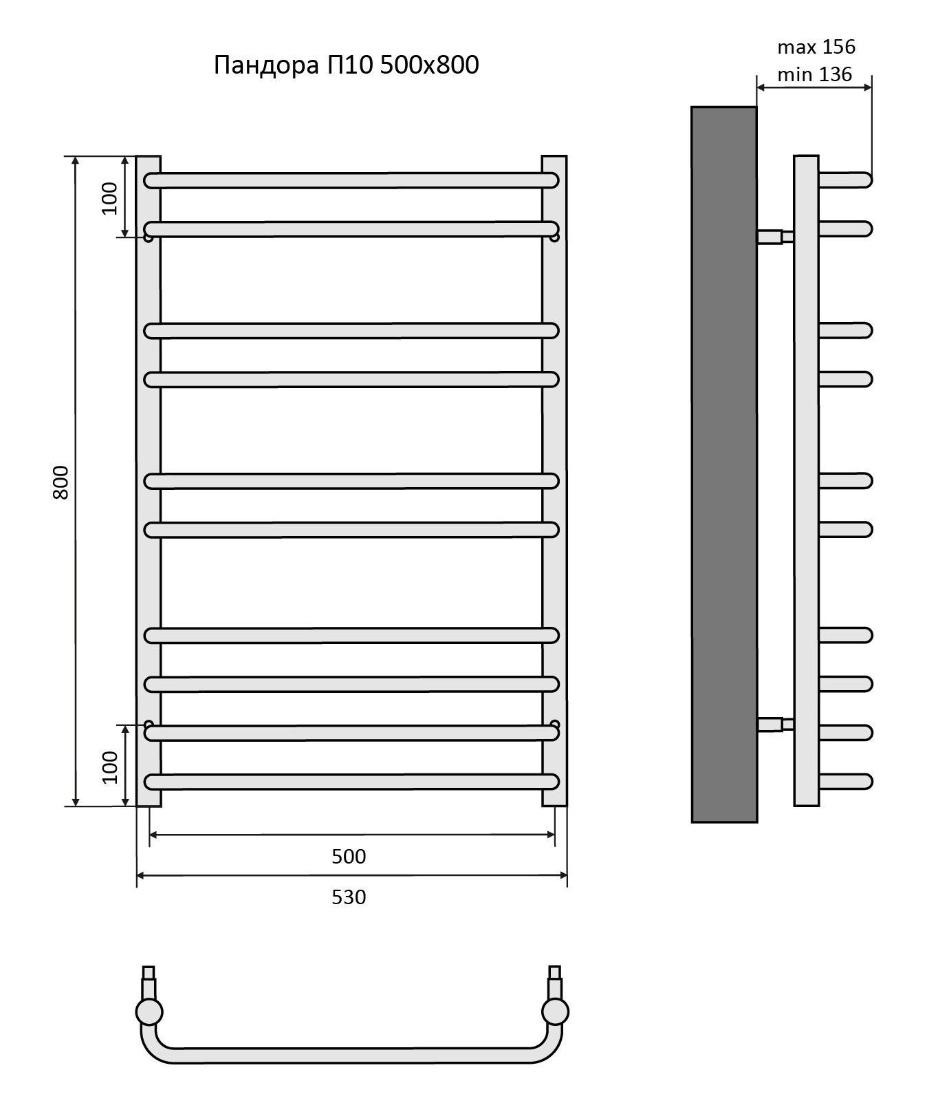 Полотенцесушитель водяной Aquatek (Акватек) Пандора П10 500х800 мм, подключение нижнее/диагональное, сверхпрочная пищевая нержавеющая сталь AISI 304L, гарантия 10 летХарактеристики: 32х18,без фитинговКомплектация:полотенцесушитель;