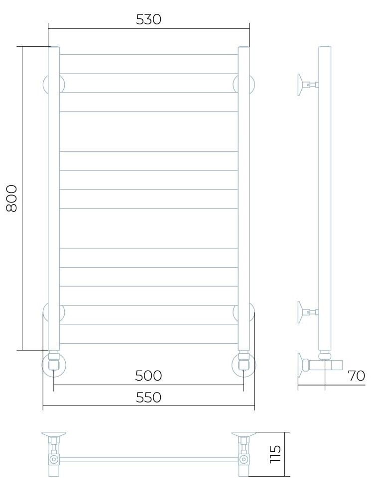 Полотенцесушитель изготовлен из нержавеющей стали — износостойкого и не подверженного коррозии материала, легко выдерживающего агрессивную среду систем отопления.