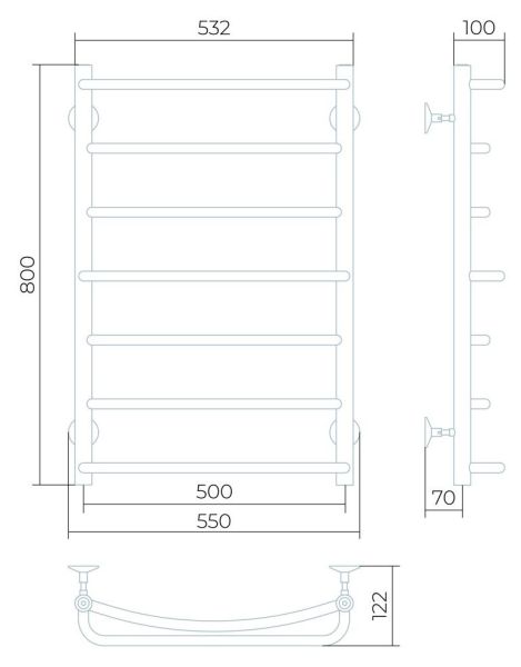 Полотенцесушитель изготовлен из нержавеющей стали — износостойкого и не подверженного коррозии материала, легко выдерживающего агрессивную среду систем отопления.