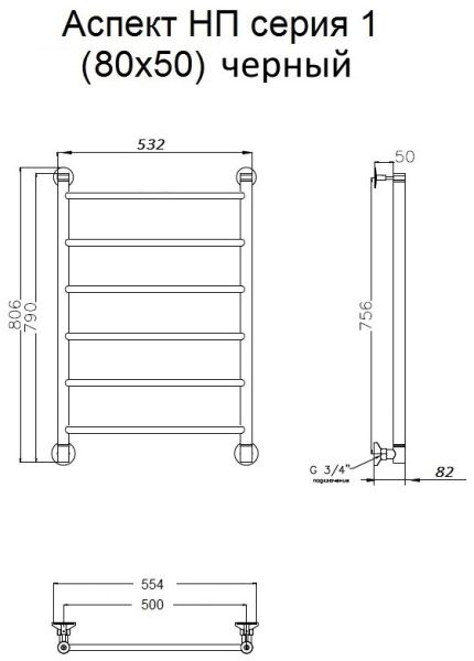 Водяной полотенцесушитель Тругор Аспект НП 1 80x50см чёрный Аспект1/НП8050черный