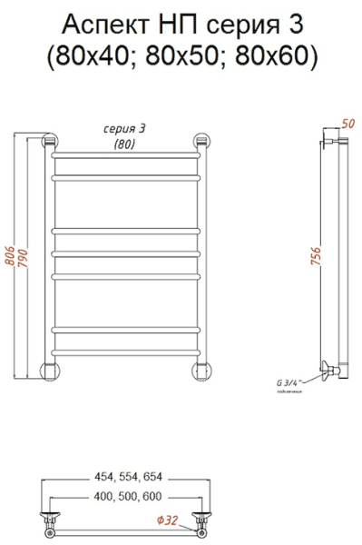 Водяной полотенцесушитель Тругор Аспект НП 3 80x60см хром Аспект3/нп8060