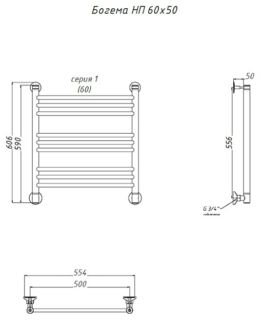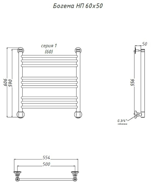 Водяной полотенцесушитель Тругор Богема НП 80x50см хром Богема/нп8050