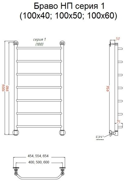Водяной полотенцесушитель Тругор Браво НП 1 100x50см хром Браво1/нп10050