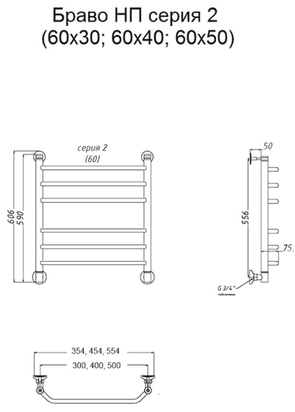 Водяной полотенцесушитель Тругор Браво НП 2 60x50см хром Браво2/нп6050