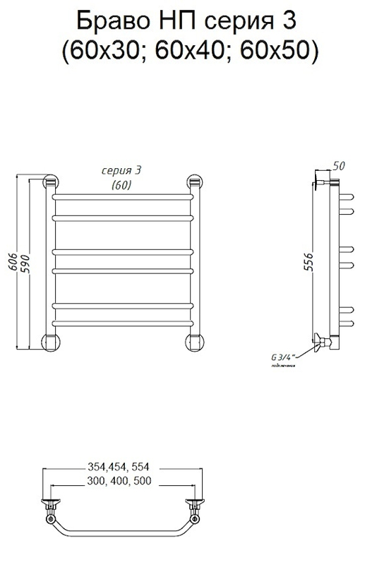 Водяной полотенцесушитель Тругор Браво НП 3 60x50см хром Браво3/нп6050