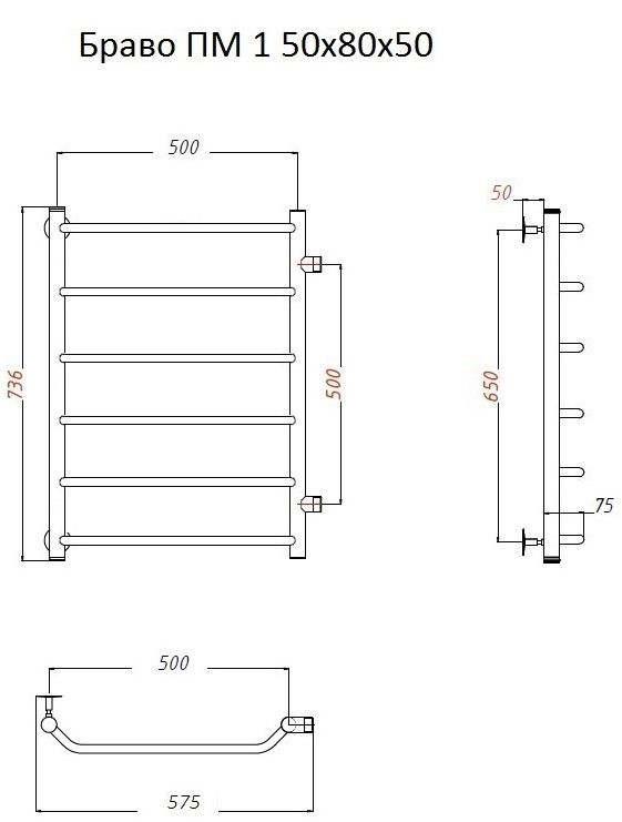 Водяной полотенцесушитель Тругор Браво ПМ 1 50x80x50см хром Браво1/ПМ508050