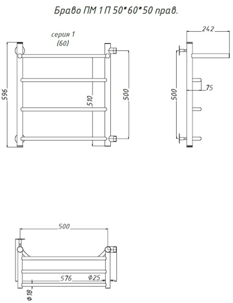 Водяной полотенцесушитель Тругор Браво ПМ 1 П 50x60x50см с полкой правый хром Браво1/ПМ506050Пправ