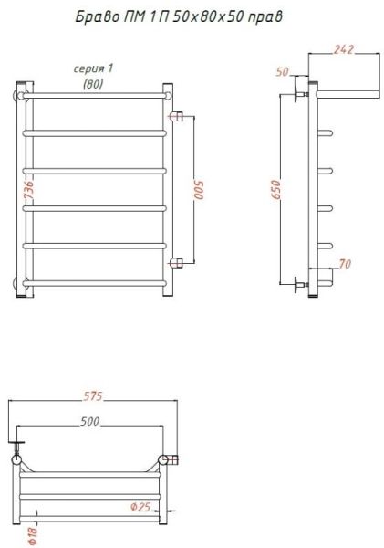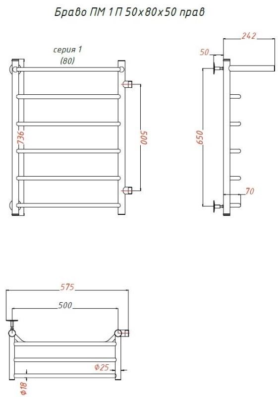 Водяной полотенцесушитель Тругор Браво ПМ 1 П 50x80x50см с полкой правый хром Браво1/ПМ508050Пправ
