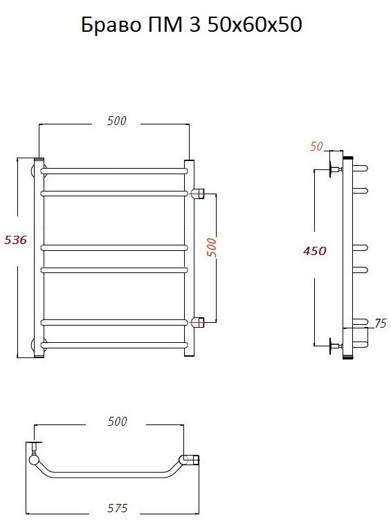 Водяной полотенцесушитель Тругор Браво ПМ 3 50x60x50см хром Браво3/ПМ506050