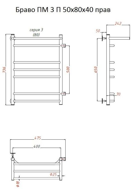 Водяной полотенцесушитель Тругор Браво ПМ 3 П 50x80x40см с полкой правый хром Браво3/ПМ508040Пправ купить