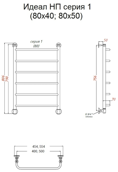 Водяной полотенцесушитель Тругор Идеал НП 1 80x50см хром Идеал1/нп8050