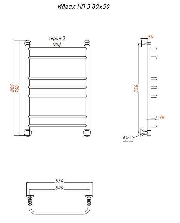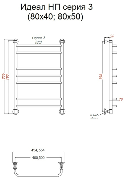 Водяной полотенцесушитель Тругор Идеал НП 3 80x50см хром Идеал3/нп8050
