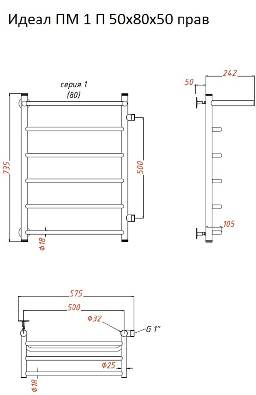 Водяной полотенцесушитель Тругор Идеал ПМ 1 П 50x80x50см с полкой правый хром Идеал1/ПМ508050Пправ купить