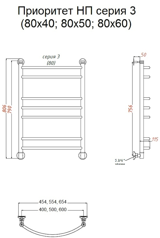 Водяной полотенцесушитель Тругор Приоритет НП 3 80x50см хром Приоритет3/нп8050
