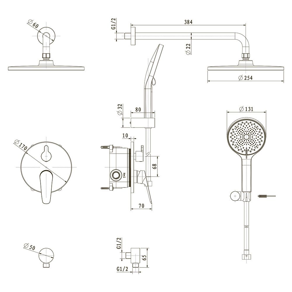 Встраиваемая душевая система TEORA, Чёрный матовый