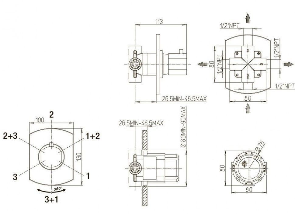 • Встраиваемый монтаж скрывает все соединения и оставляет на виду только рычаг управления, что добавляет в интерьер дизайнерский акцент, экономя пространство.