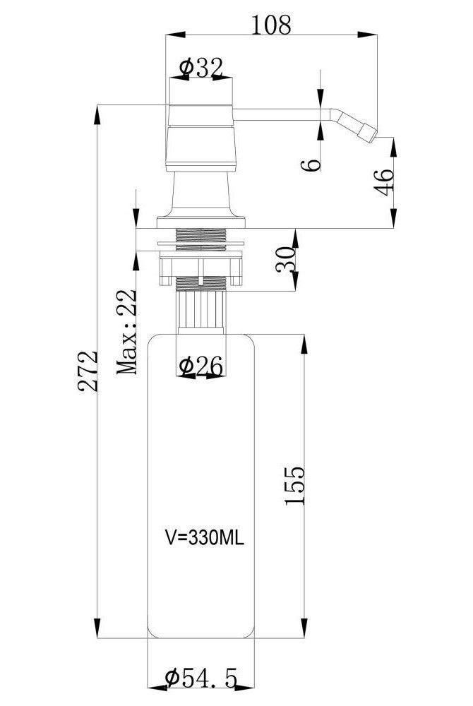Встраиваемый дозатор для мылаЛатунь, ABS - пластик.Максимальная толщина столешницы 37 ммЦвет: черный.Объем: 330 мл