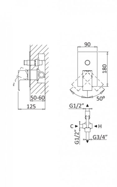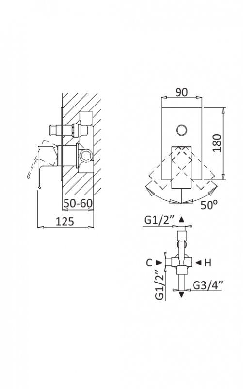 Оснащение: скрытая монтажная часть, дивертор
